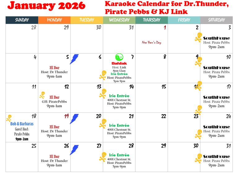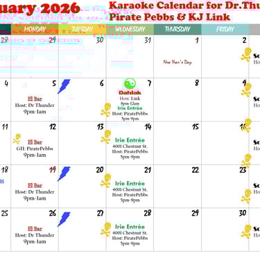January 2026 Karaoke Calendar