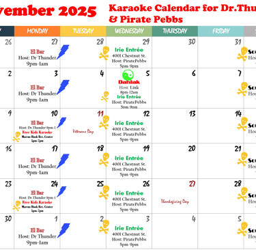 November 2025 Karaoke Calendar