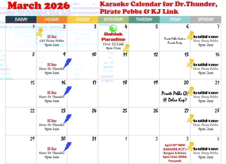 March 2026 Karaoke Calendar